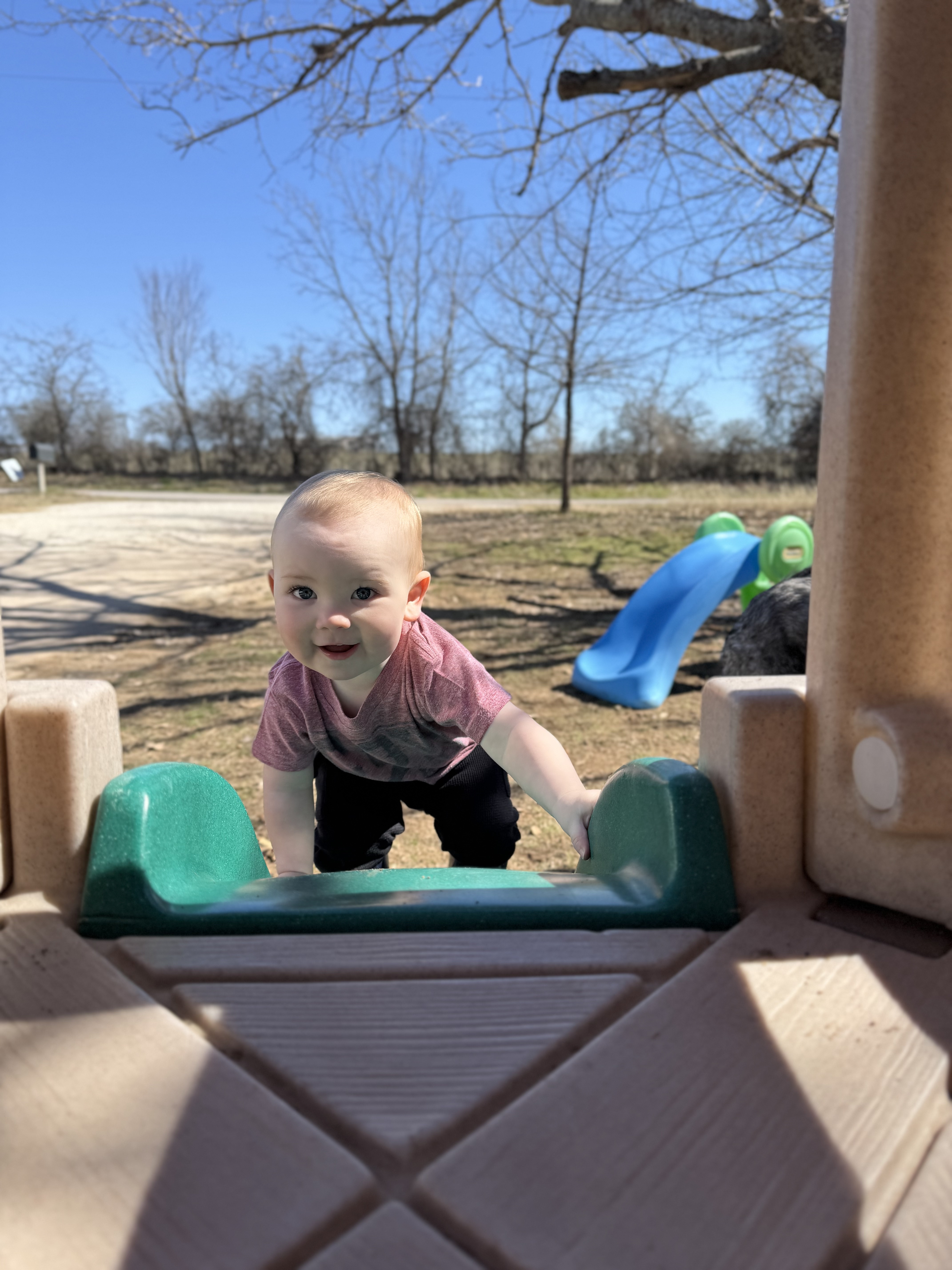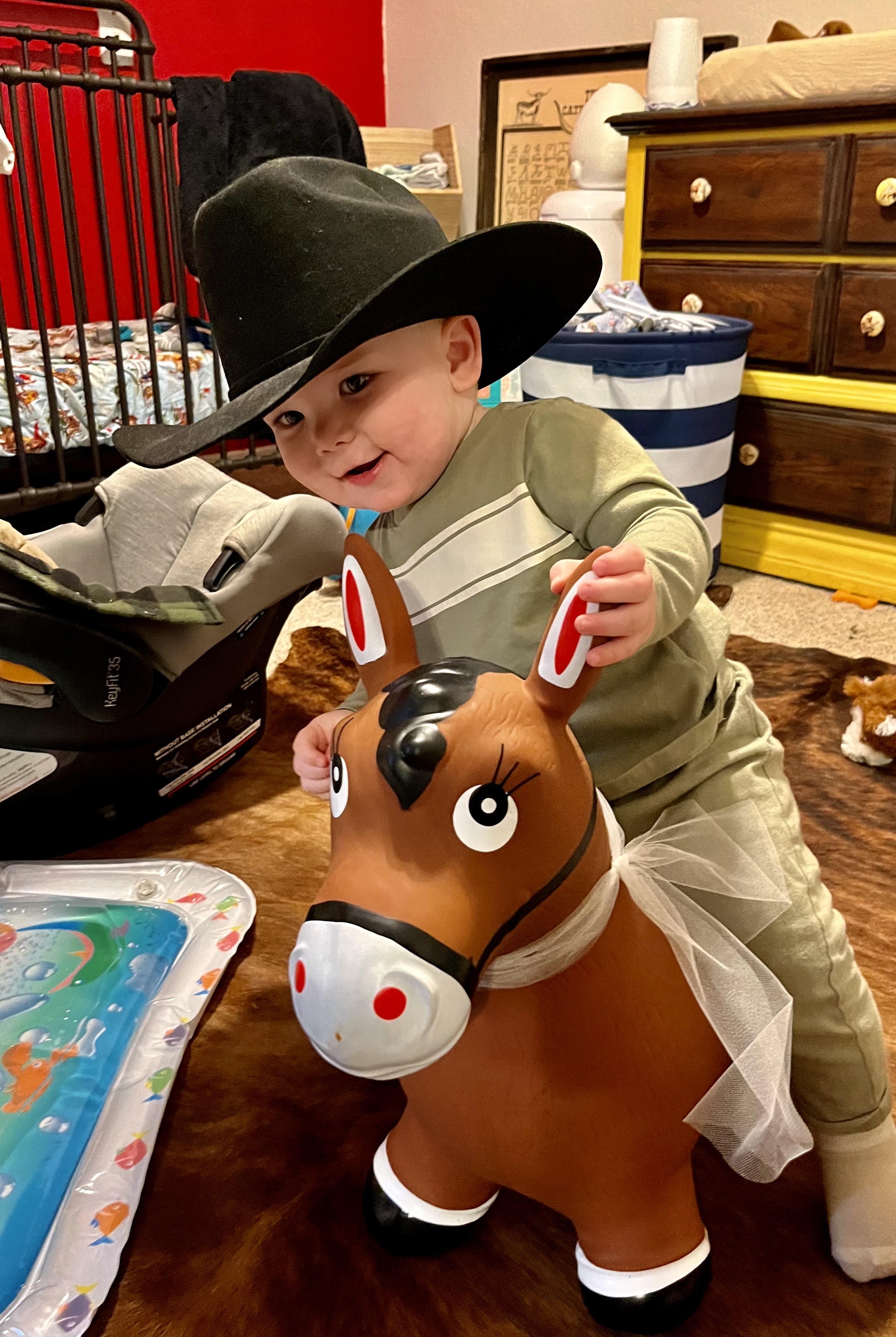 It didn’t really start until he realized he had the freedom of walking. He had the freedom to get to where he wanted to go by himself. He thinks he can ride everything like a horse. That has me needing my own oxygen tank. I need it to carry around. It’s so funny though. No matter what happens or what he gets into, he literally gets up with a furrowed brow. Even when something bucks him off, he literally gets up. Then he busts out laughing. Whilst I’m turning blue, crying and probably hurting myself more trying to keep him from hurting himself. I’m pretty sure he’s made of rubber. LOL!!